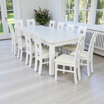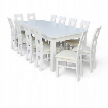DUŻY BIAŁY ZESTAW STÓŁ 100x200/ 300cm + 8 KRZESEŁ Z LITEGO DREWNA