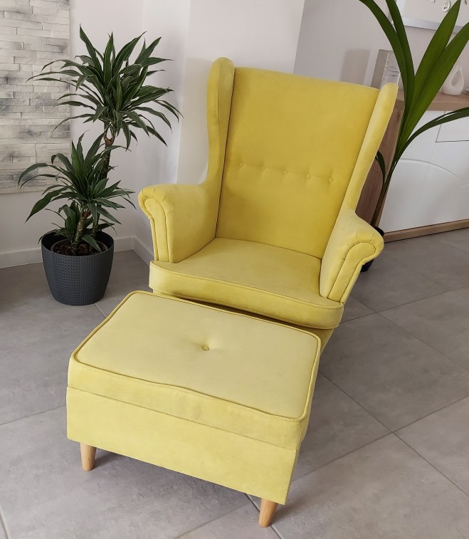 FOTEL SKANDYNAWSKI USZAK +PODNÓŻEK ZE SCHOWKIEM, DUŻO KOLORÓW