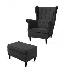 FOTEL USZAK Z PODNÓŻKIEM STYL CHESTERFIELD GŁĘBOKO PIKOWANY PLAMOODPORNY