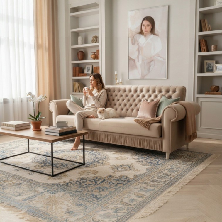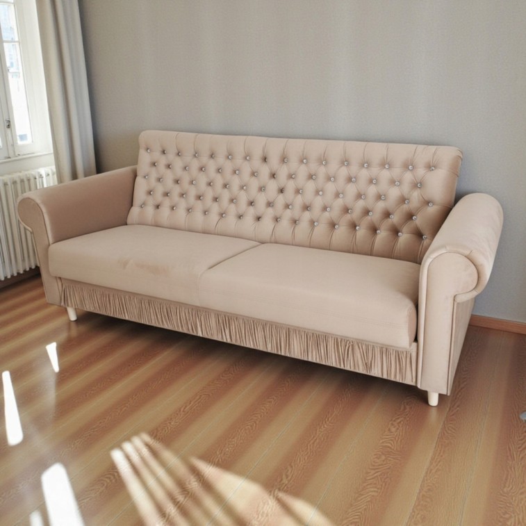 Sofa Pikowana Skandynawska Rozkładana w stylu Chesterfield