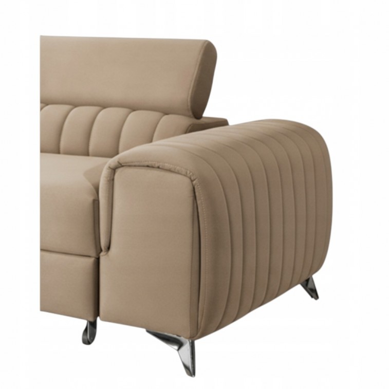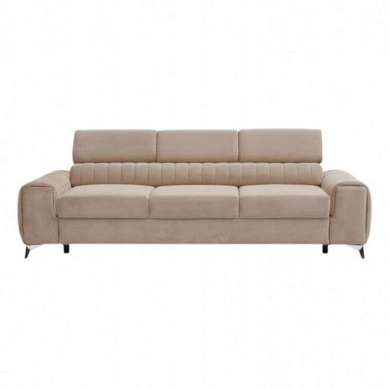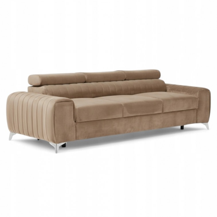 NOWOCZESNA SOFA KANAPA ROZKŁADANA Z FUNKCJĄ SPANIA REGULOWANE ZAGŁÓWKI BEŻ