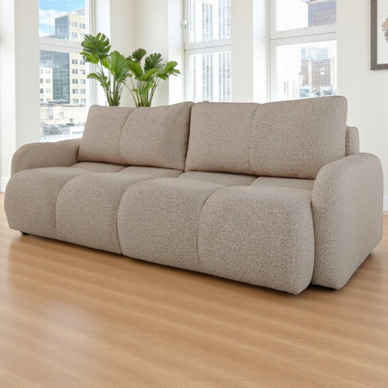 Kanapa rozkładana Pio to idealne połączenie estetyki wykonania i ciekawych rozwiązań. Mebel zachwyca zaokrąglonymi kształtami