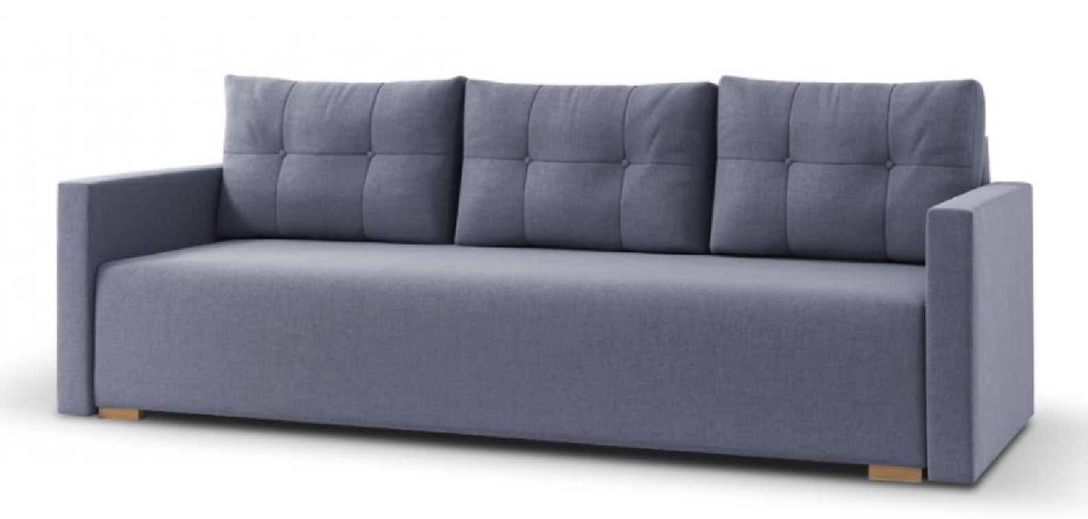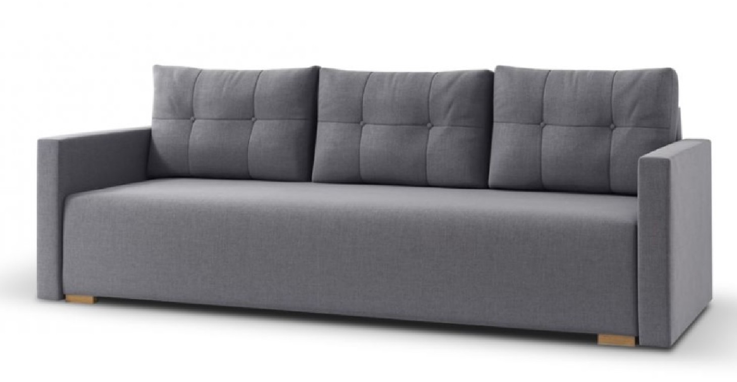 Kanapa ROCO posiada funkcję spania oraz głęboki pojemnik na pościel. Wykonana została na sprężynach BONELL + pianka wysokoelastyczna. Jest to mebel wolnostojący (tył obity tą samą tkaniną). Poduszki na zamek.