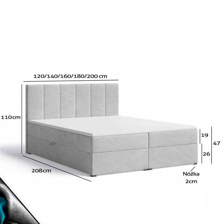 Łóżko kontynentalne TOLA 140x200 z pojemnikami i materacem bonellowym ⭐