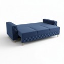 DUŻA ROZKŁADANA KANAPA COMO W ODCIENIU NIEBIESKIM Z DREWNIANYMI NÓŻKAMI WZÓR PIKOWANIA KARO GUZIKI