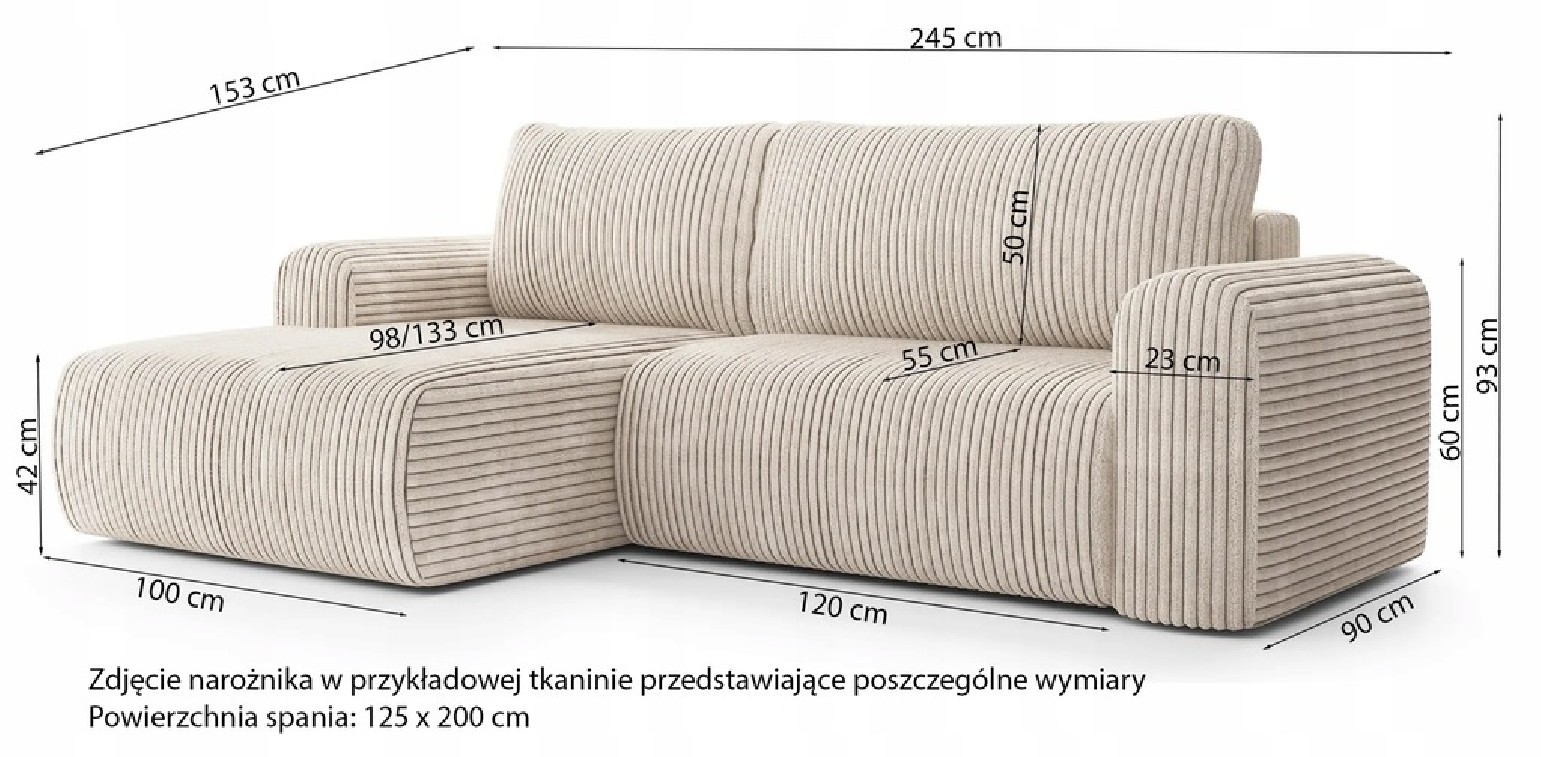 NAROŻNIK ROGÓWKA LACO FUNKCJA SPANIA POJEMNIK NA POŚCIEL SZTRUKS