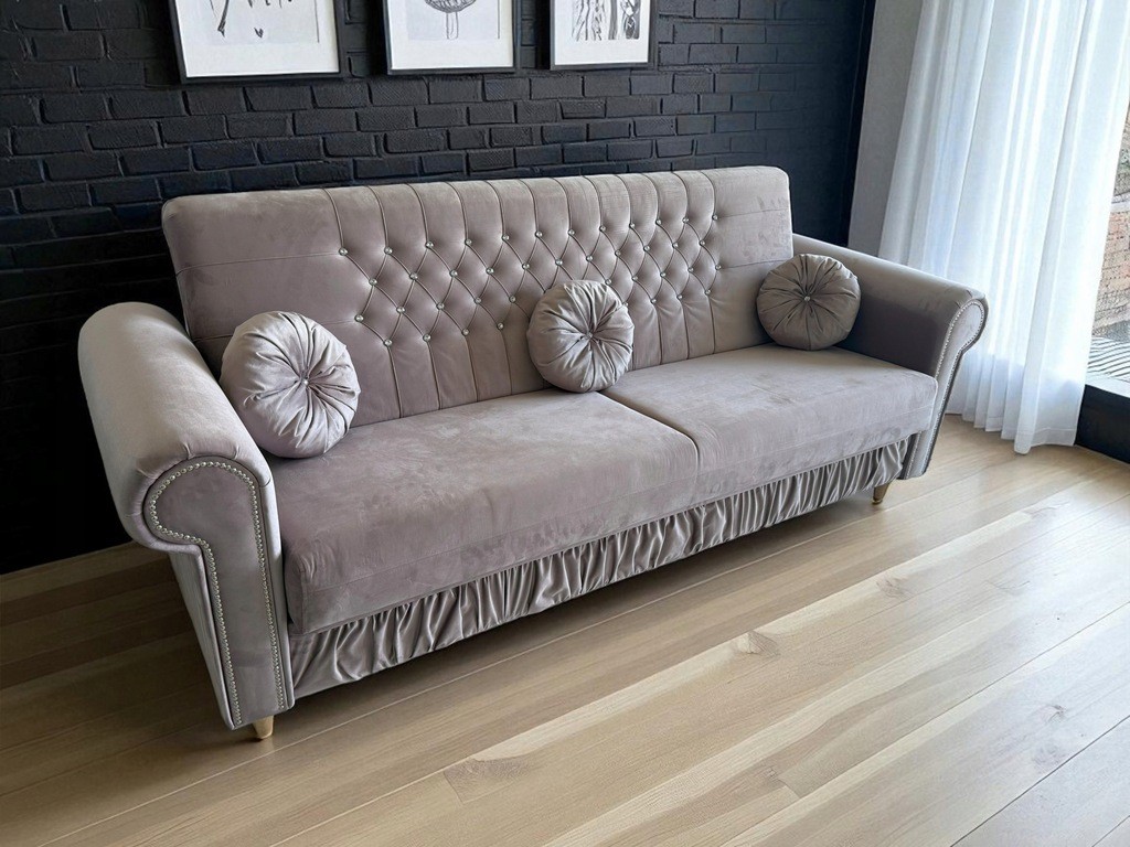 Kanapa Sofa Pikowana Skandynawska Rozkładana Chesterfield