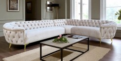 Narożnik LOTUS to prawdziwa innowacja i idealny produkt dla tych, którzy cenią sobie nowoczesne wzornictwo w mieszkaniu oraz styl glamour . Nóżki wykonane ze stali nierdzewnej gwiazdy na wysoki połysk przez co podkreślają współczesny styl. Głębokość osadzenia siedziska wynosi 64 cm dzięki czemu siedzenie jest bardzo komfortowe. Wysoki poziom komfortu siedzenia zapewnia również to, że w narożniku zastosowano wysokiej jakości piankę komfort wypełniającą, która dostosowuje się do kształtu ciała oraz sprężyny. Masywność bukowej ramy zapewnia stabilność i wytrzymałość konstrukcji.