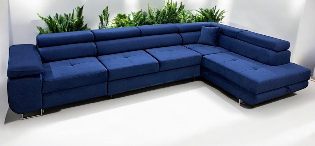 NAROŻNIK GLAMOUR PIKOWANY FUNKCJA SPANIA POJEMNIK NA POŚCIEL