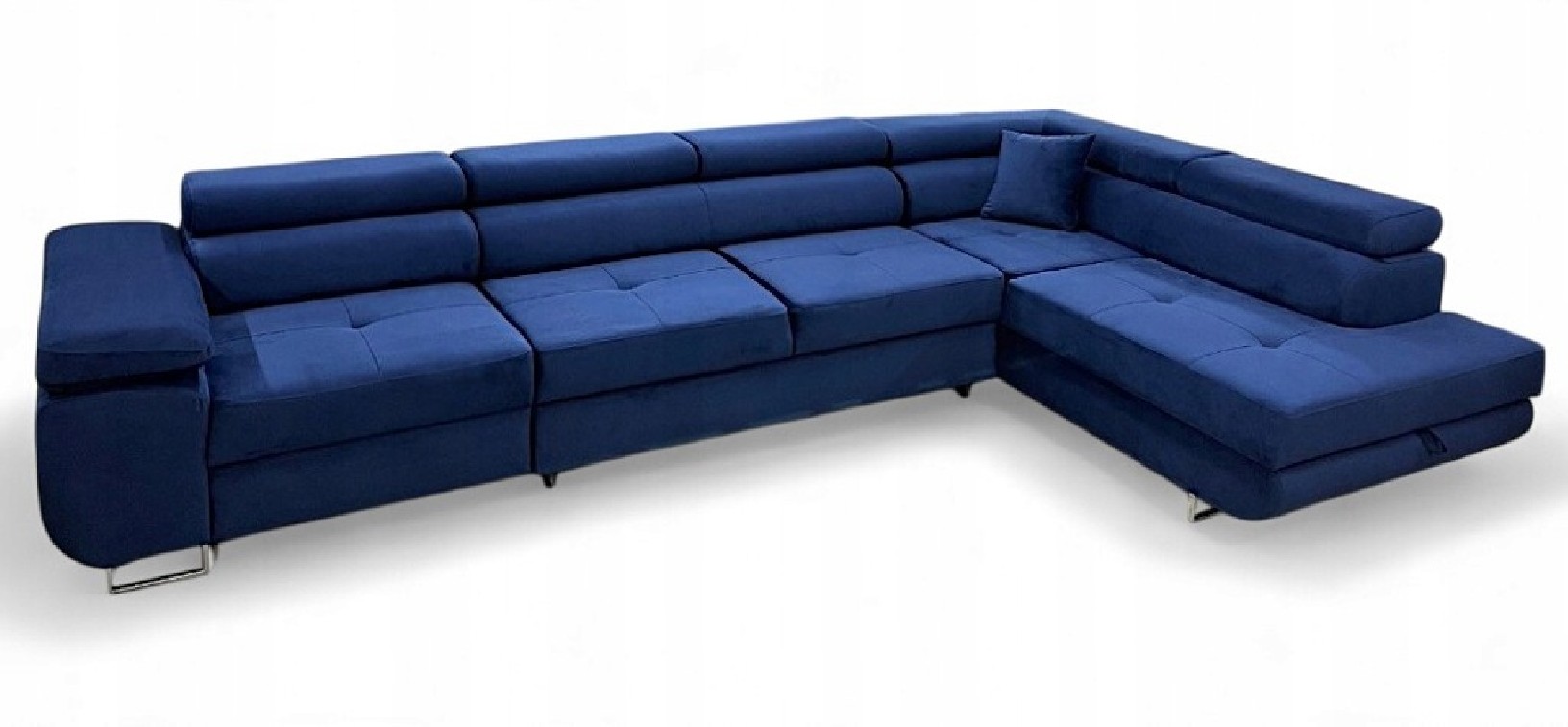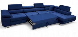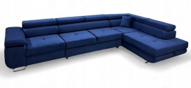 Narożnik ANTOS L posiada funkcję spania oraz pojemnik na pościel. Nogi w narożniku zastosowano chromowe. Narożnik posiada 4 regulowane zagłówki, ozdobne przeszycia oraz piki na siedzisku.