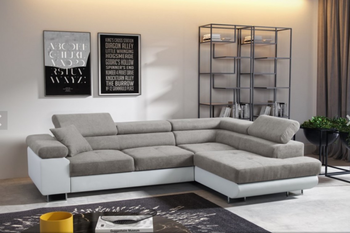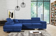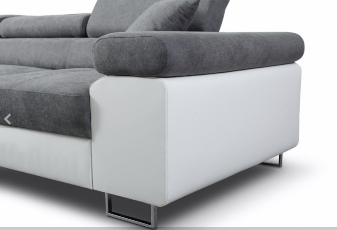 Narożnik ANTOŚ posiada funkcję spania oraz dwa pojemniki na pościel. Nogi w narożniku zastosowano chromowe. Narożnik posiada 3 regulowane zagłówki, ozdobne przeszycia oraz piki na siedzisku.