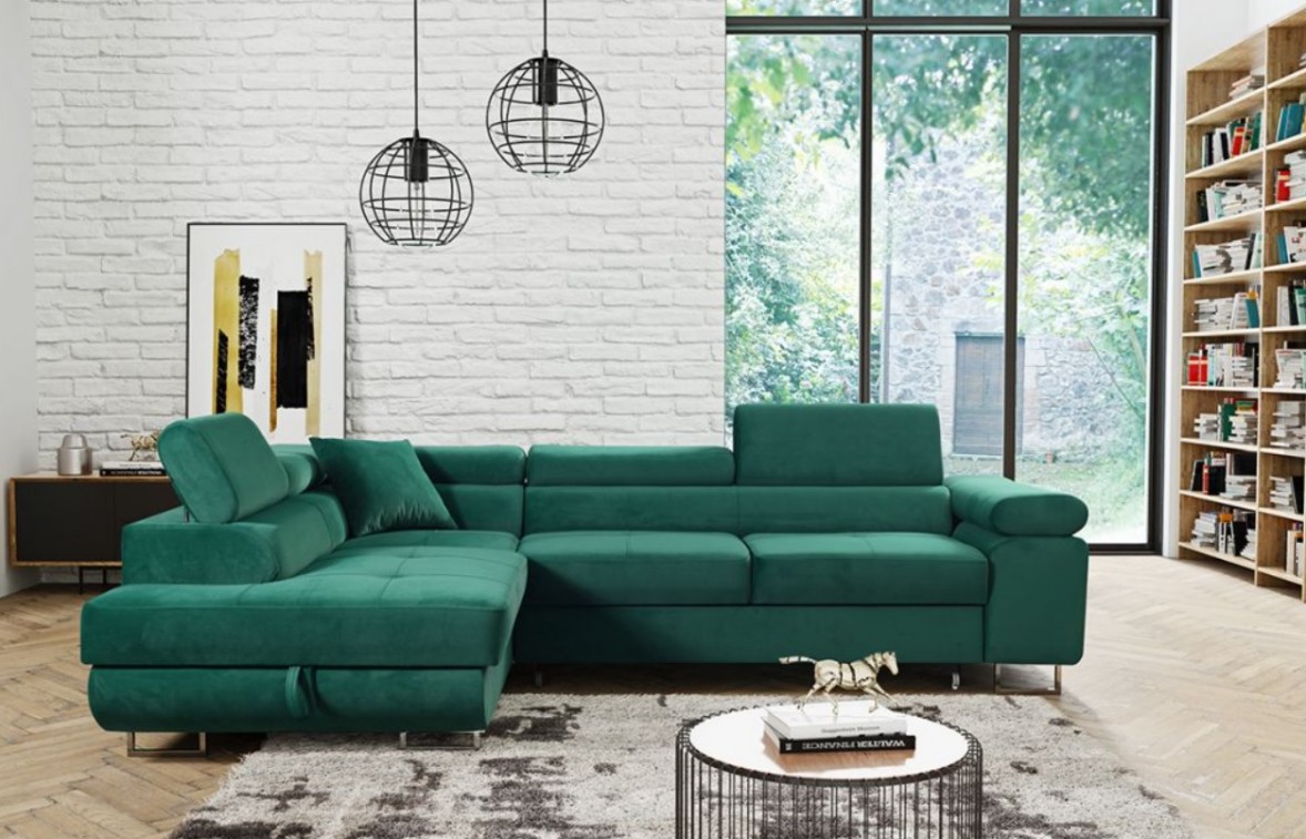 NAROŻNIK GLAMOUR PIKOWANY FUNKCJA SPANIA POJEMNIK NA POŚCIEL