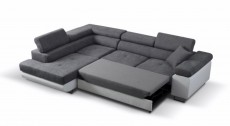 Narożnik ANTOŚ posiada funkcję spania oraz dwa pojemniki na pościel. Nogi w narożniku zastosowano chromowe. Narożnik posiada 3 regulowane zagłówki, ozdobne przeszycia oraz piki na siedzisku.