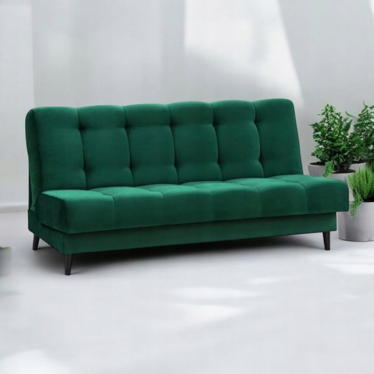 Kanapa rozkładana FLOR 195 cm to praktyczny mebel wypoczynkowy do każdego pomieszczenia. Dzięki niewielkim rozmiarom kanapy rozkładanej 195 cm wpasuje się ona do każdego pomieszczenia. Jest ona doskonałym wyborem jako kanapa rozkładana do sypialni i salonu. Po rozłożeniu uzyskuje powierzchnię spania 194 x 116 cm, a schowek pod siedziskiem pomieści pościel, koce lub poduszki. Kanapa rozkładana skandynawska sprawdzi się także w pokoju młodzieżowym, w którym brakuje miejsca na łóżko. Nastolatek w ten sposób zyska miejsce do przyjmowania rówieśników oraz do wygodnego spania.