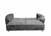 KANAPA MOLLI ROZKŁADANA Z POJEMNIKIEM NA POŚCIEL W KOLORZE SZARYM Z DREWNIANYMI PROSTYMI NÓŻKAMI WZÓR PIKOWANIA GŁĘBOKIE PIKI Chesterfield GUZIKI