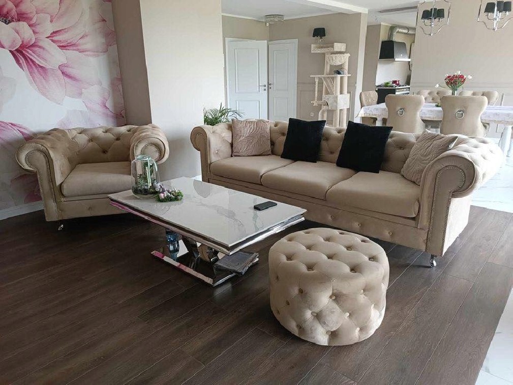 Komplet wypoczynkowy PRIMA w stylu Chesterfield do salonu zestaw pikowany guzikami.