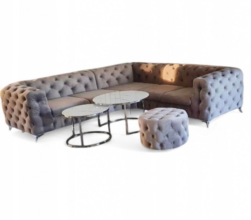 NAROŻNIK PIKOWANY W STYLU CHESTERFIELD