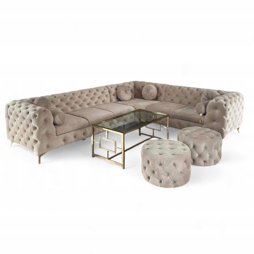 NAROŻNIK PIKOWANY CHESTERFIELD + 2 PUFY PIKOWANE NOWOŚĆ RÓŻNE KOLORY