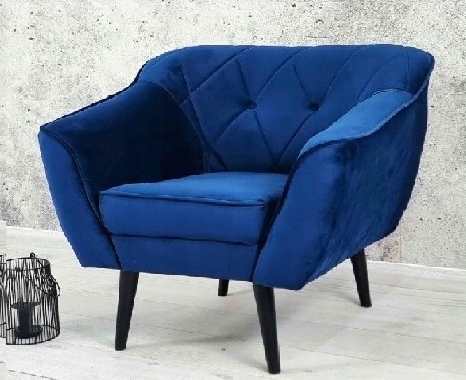 SOLIDNA SOFA 3 +1 W KOLORZE GRANATOWYM Z DREWNIANYM CZARNYMI NÓŻKAMI WZÓR PIKOWANIA OPARCIA KARO GUZIKI
