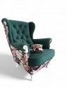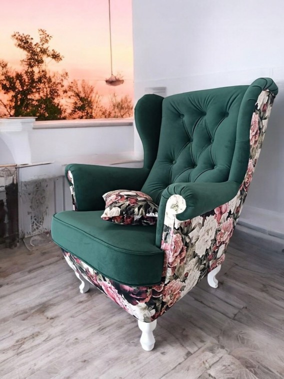 FOTEL USZAK W WYBRANYM MATERIALE Z PROSTYMI NÓŻKAMI GŁĘBOKO PIKOWANY GUZIKAMI W KARO