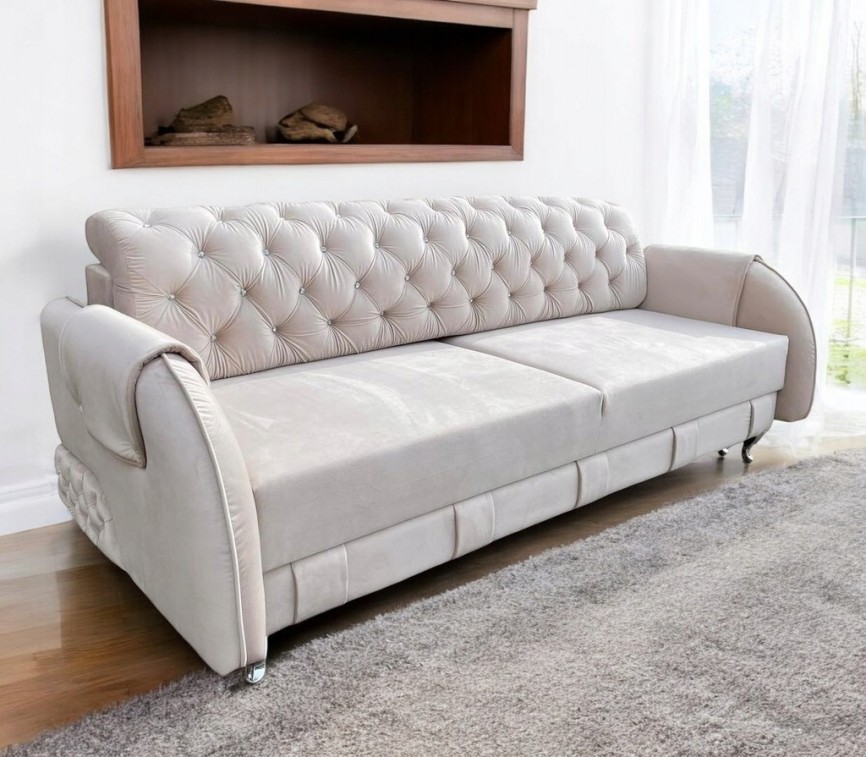 Sofa LUIZA pikowana w stylu GLAMOUR z funkcją spania