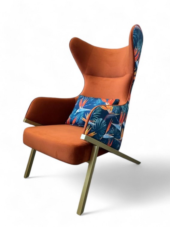 FOTEL WYKONANY W TAKNINIE RAJSKIE PTAKI + MATERIAŁ PLAMOODPORNY VELVET