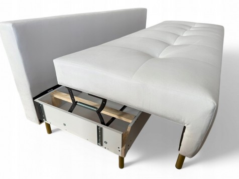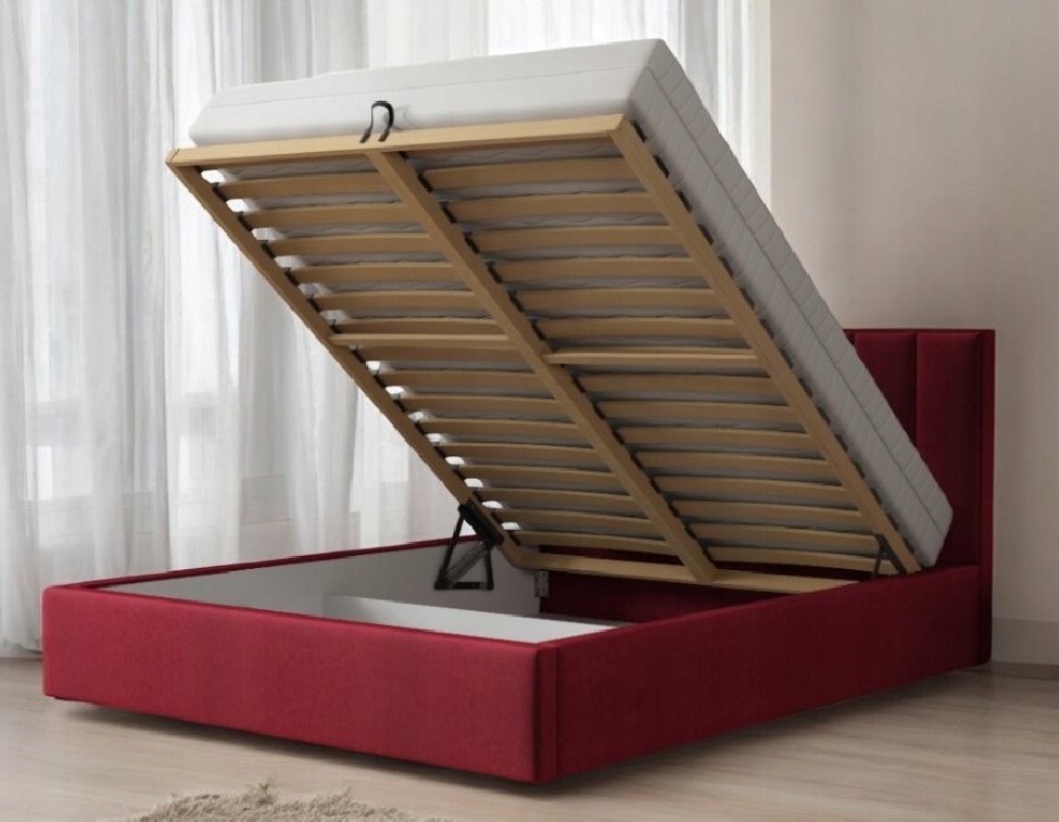 Łóżko tapicerowane sypialnianie wykonujemy w czterech tkaninach , Dodatkowo jest to łóżko z pojemnikiem na pościel oraz stelażem podnoszonym do góry. Stelaż jest drewniany z podnośnikami sprężynowymi jednak można go zamienić na stelaż na metalowej ramie z podnośnikami gazowymi(zdjęcie niżej)