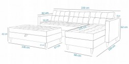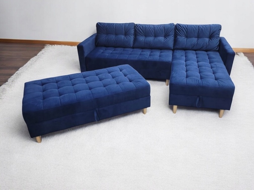 NAROŻNIK PIKOWANY FUNKCJA SPANIA Z PUFA I POJEMNIKIEM NA POŚCIEL