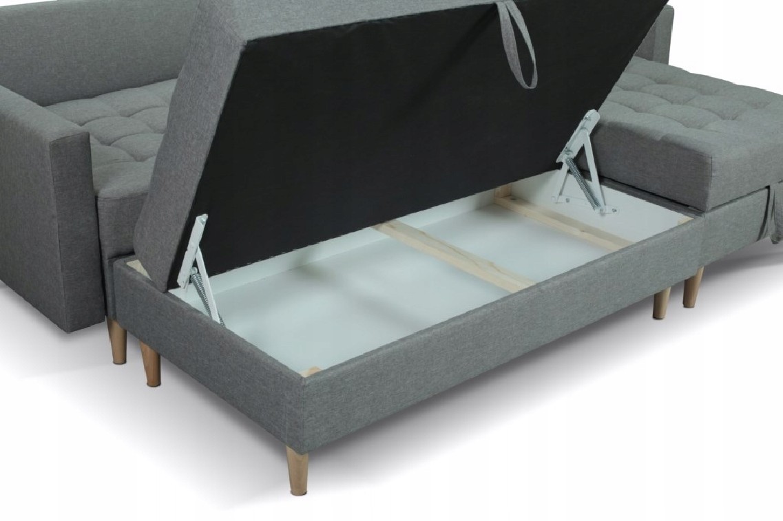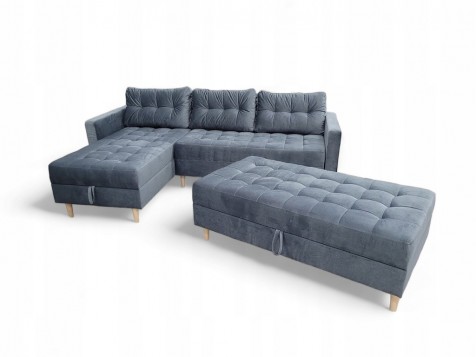 NAROŻNIK PIKOWANY FUNKCJA SPANIA Z PUFA I POJEMNIKIEM NA POŚCIEL