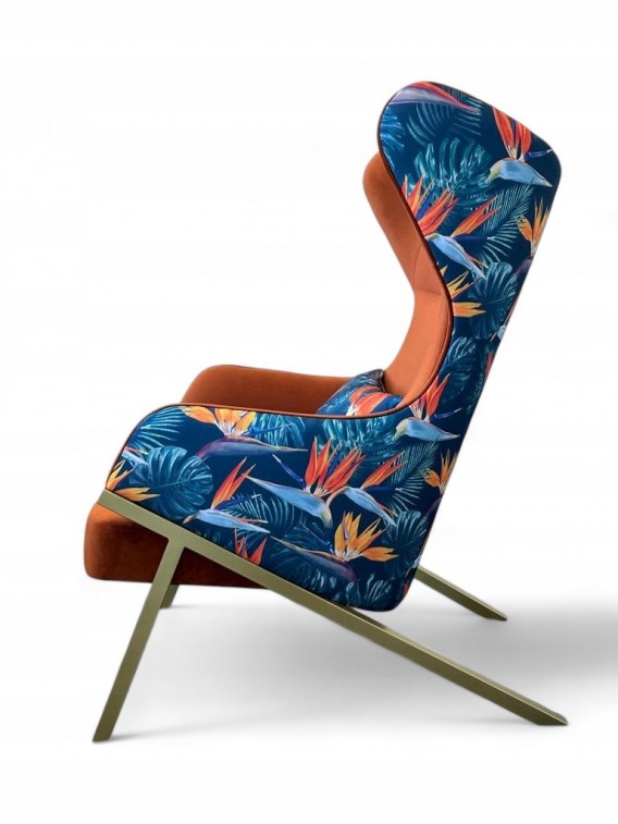 FOTEL WYKONANY W TAKNINIE RAJSKIE PTAKI + MATERIAŁ PLAMOODPORNY VELVET