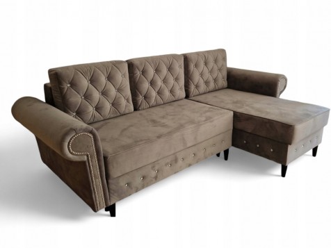 Produkt jest idealnym sposobem na nadanie w Twoim domu estetycznego , a zarazem luksusowego stylu GLAMOUR! Mebel poza praktyczną funkcją spania posiada pojemnik na pościel oraz mechanizm ułatwiający rozkładanie DL. Wygodę podczas użytkowania zapewni nam wysokoelastyczna pianka HR45 oraz sprężyny faliste, a poduszki oparciowe pozwolą na dogodną pozycję dla naszego kręgosłupa. Wychodząc naprzeciw wymaganiom naszych klientów, przygotowaliśmy szeroki wybór tkanin tapicerskich i nóżek. Dzięki temu dopasujecie narożnik tak, by idealnie pasował do aranżacji wnętrza
