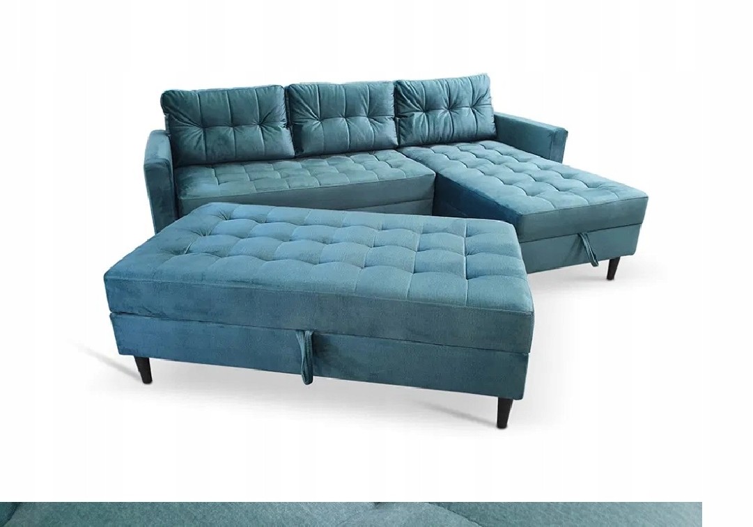 NAROŻNIK PIKOWANY FUNKCJA SPANIA Z PUFA I POJEMNIKIEM NA POŚCIEL