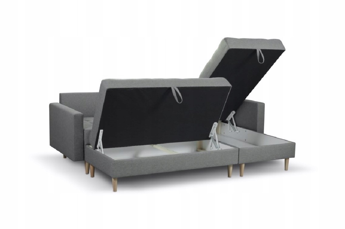 Nie tylko wyrazistym, ale i funkcjonalnym dodatkiem do narożnika jest duża pufa. Dosuwając ją do narożnika zyskujemy dodatkową powierzchnię siedziska. Co więcej - pufa oraz narożnik posiada przestronny schowek, który sprawdzi się jako pojemnik na pościel.