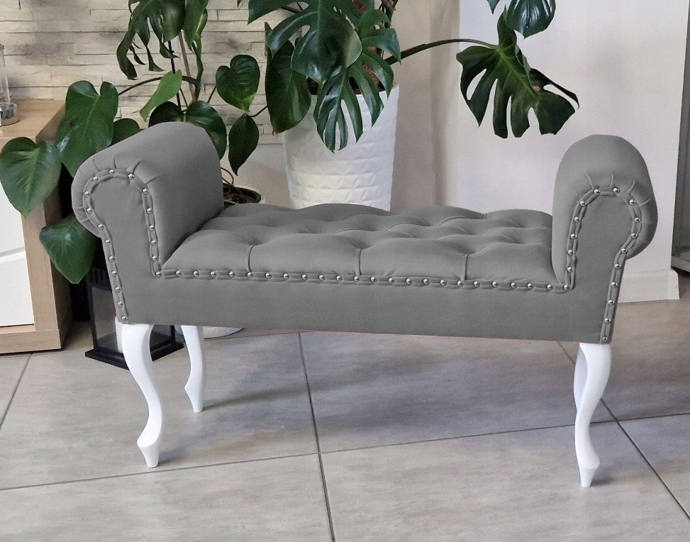 Solidna głęboko pikowana guzikami ławeczka w stylu chesterfield z nóżkami ludwik