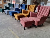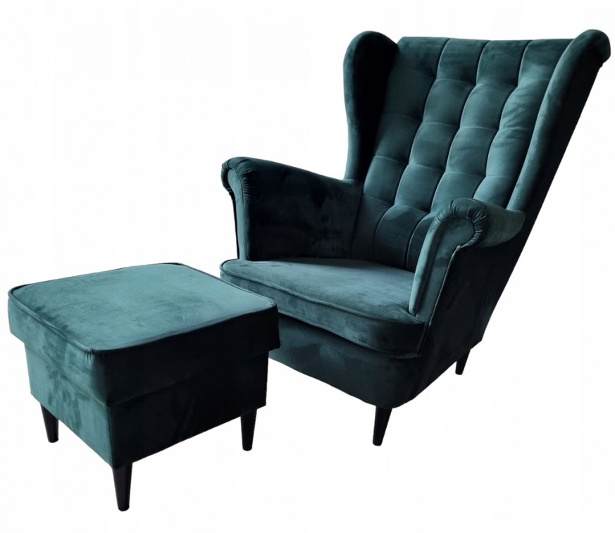 FOTEL USZAK WE WCIĄGI W 4 KOLORACH OD RĘKI Z PROSTYMI DREWNIANYMI NÓŻKAMI WZÓR PIKOWANIA WCIĄGI. + PODNÓŻEK ZE SCHOWKIEM