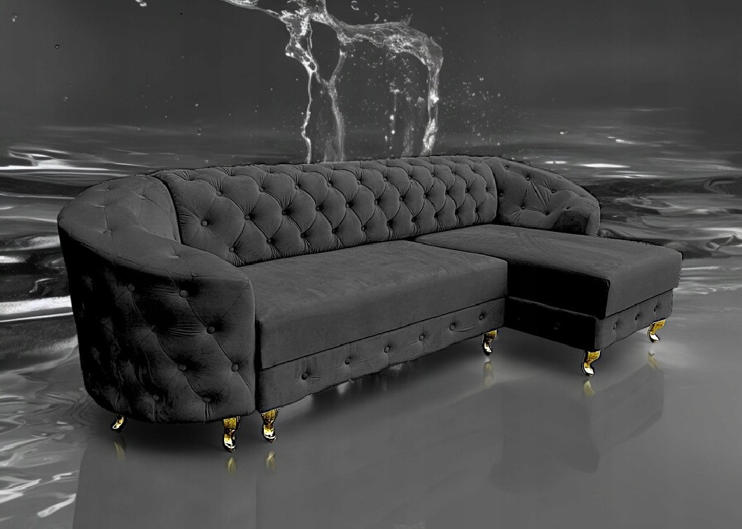 NAROŻNIK GLAMOUR PIKOWANY FUNKCJA SPANIA+ POJEMNIK