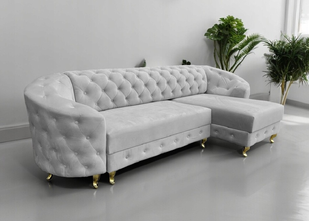 NAROŻNIK GLAMOUR PIKOWANY FUNKCJA SPANIA+ POJEMNIK