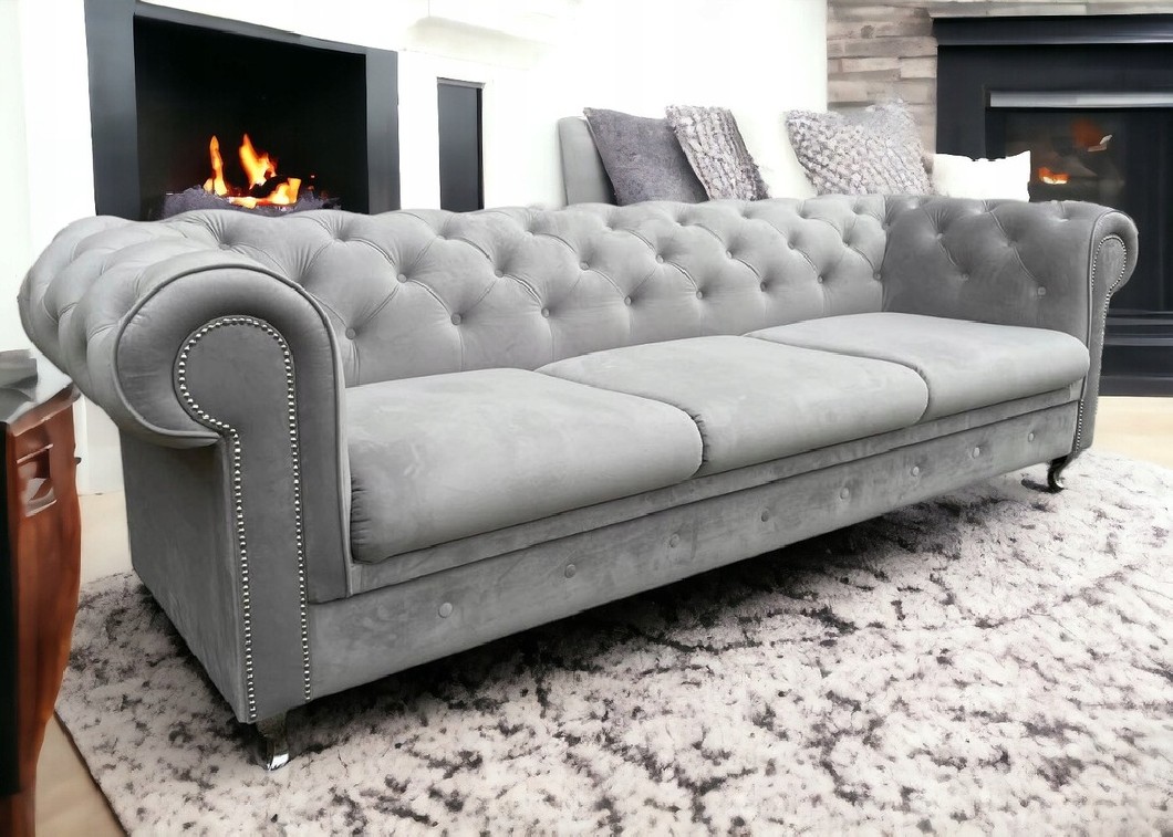Kanapa Sofa trzyosobowa w stylu Chesterfield do salonu pikowana guzikami