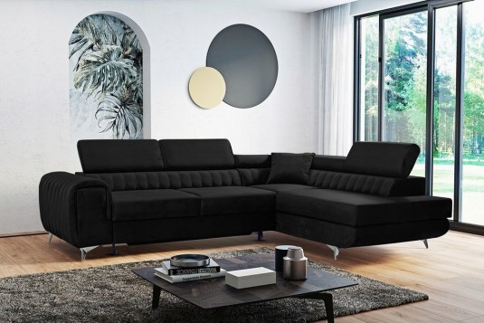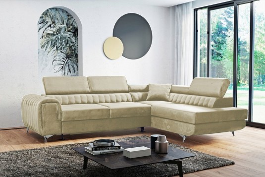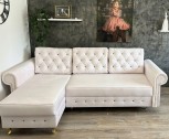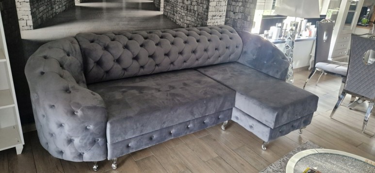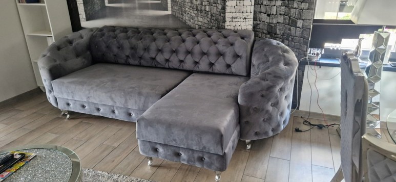 NAROŻNIK GLAMOUR PIKOWANY FUNKCJA SPANIA POJEMNIK NA POŚCIEL