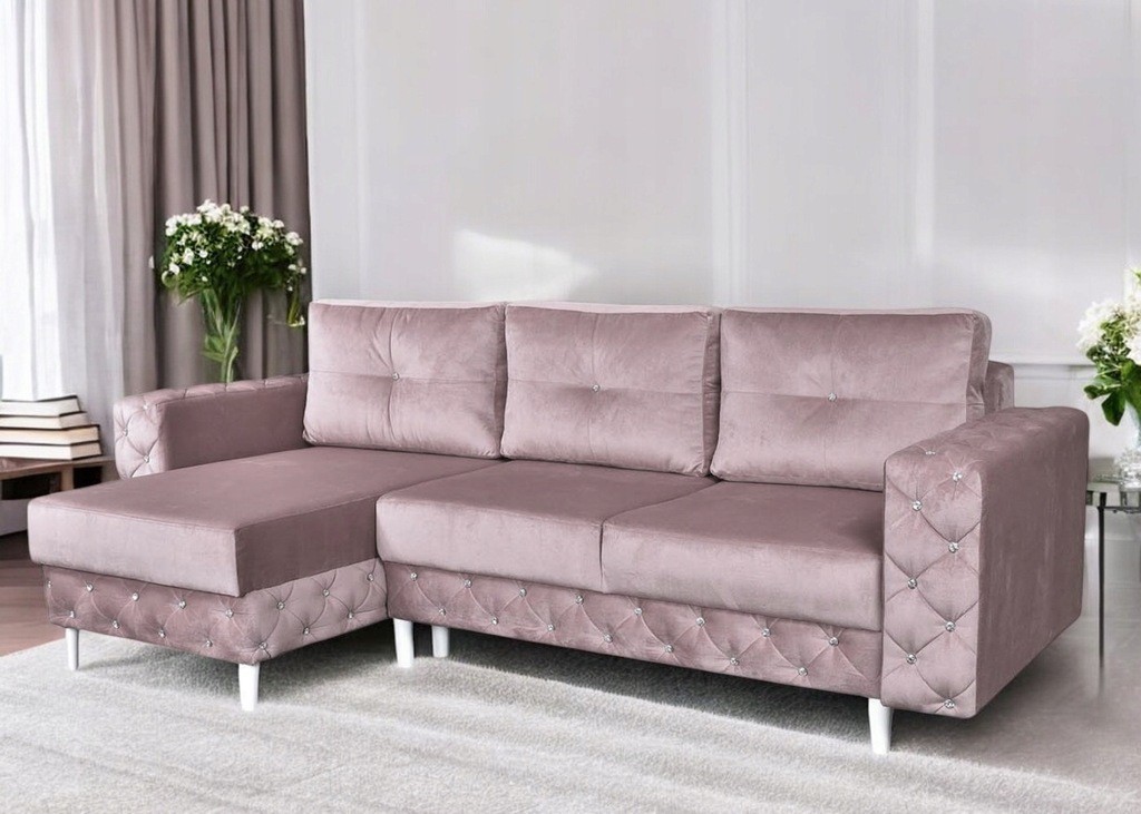 NAROŻNIK GLAMOUR PIKOWANY FUNKCJA SPANIA POJEMNIK NA POŚCIEL
