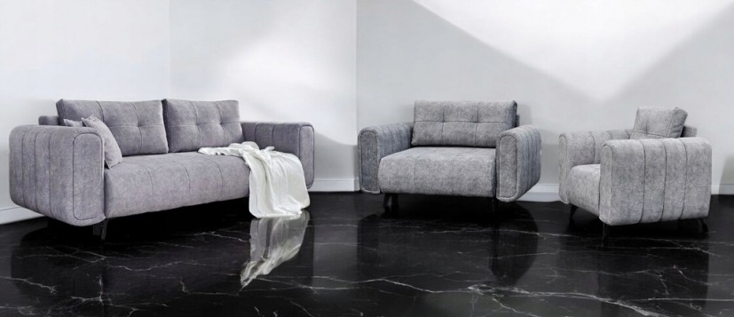 ZESTAW MEBLI WYPOCZYNKOWYCH LEXI to nowoczesny i elegancki mebel, który jest solidnie wykonany co daje większy komfort użytkowania i wygodę! Posiada on wyjątkowo charakterystyczny wygląd poprzez pikowania na oparciu i przeszycia na bokach . Każdy detal i szczegół mebla jest tak dopracowany, aby nasz mebel cieszył Państwa jak najdłużej.