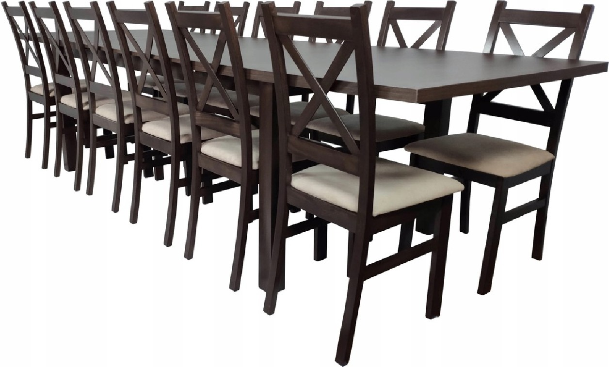 ZESTAW STÓŁ 100x200/250/300 12 krzeseł KRZYŻ