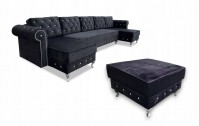 NAROŻNIK GLAMOUR PIKOWNAY PLAMOODPORNY + DUŻY PODNÓŻEK ZE SCHOWKIEM