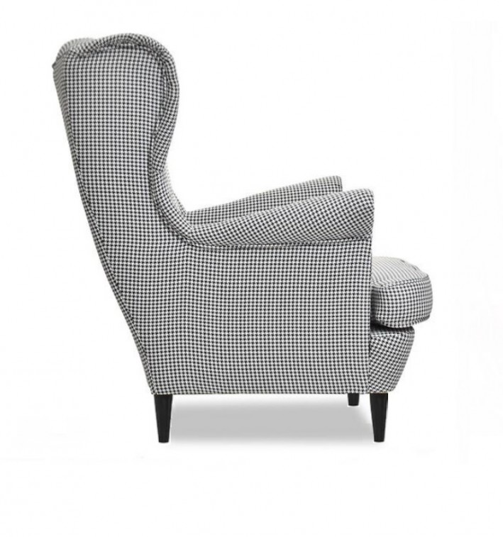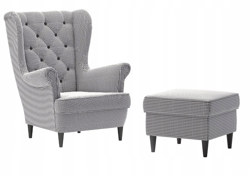 FOTEL USZAK W PEPITKĘ + PODNÓŻEK ZE SCHOWKIEM
