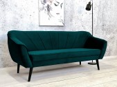 SOLIDNA SOFA 3 + 2 +1 W KOLORZE ZIELONYM Z DREWNIANYMI CZRNYMI NÓŻKAMI WZÓR PIKOWANIA OPARCIA PASY