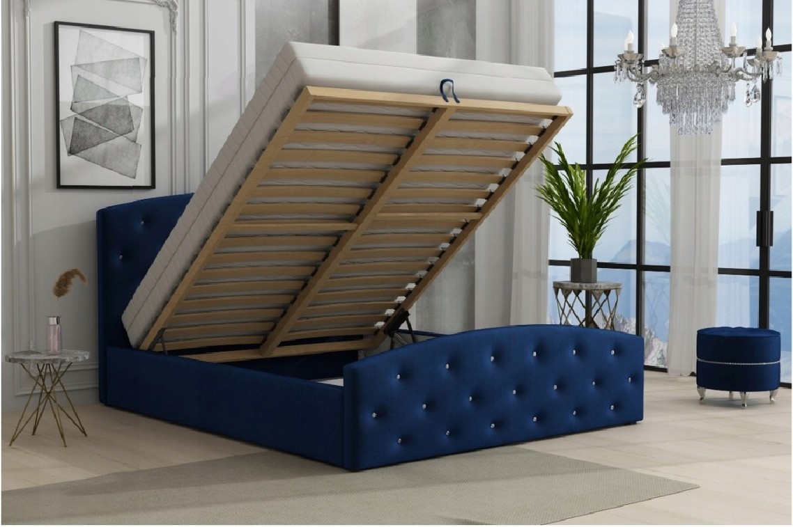 ŁÓŻKO SYPIALNIANE TAPICEROWANE GLAMOUR KRYSZTAŁKI 140 x 200 + POJEMNIK