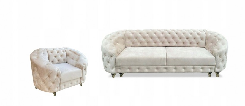 ZESTAW WYPOCZYNKOWY CHESTERFIELD KANAPA PIKOWANA + FOTEL
