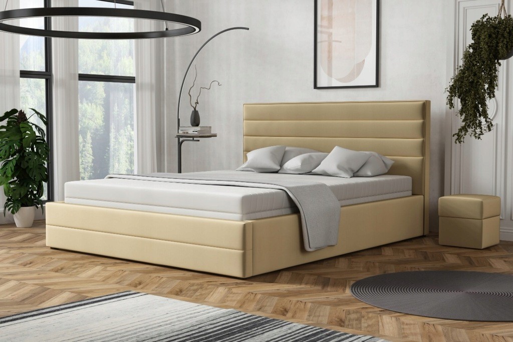Łóżko tapicerowane sypialniane w PASY MODERN 180x200 z drewnianym stelażem oraz pojemnikiem na pościel