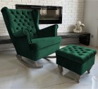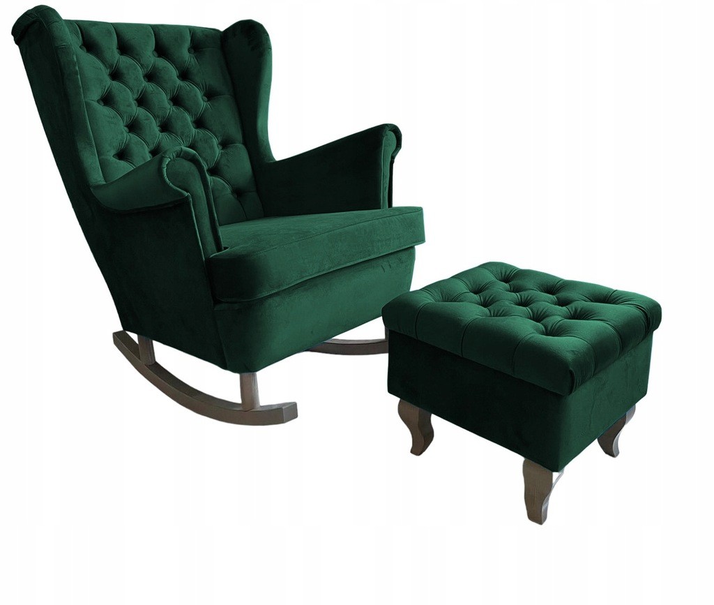 FOTEL USZAK BUJANY GŁĘBOKO PIKOWANY NA PŁOZACH DREWNIANYCH GLAMOUR CHESTERFIELD + PODNÓŻEK CHESTERFIELD GŁĘBOO PIKOWANY ZE SCHOWKIEM OTWIERANYM DO GÓRY