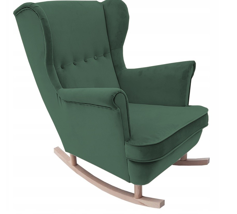 SOLIDNY FOTEL BUJANY MALAGA USZAK W DOWOLNYM KOLORZE Z DREWNIANYMI PŁOZAMI, BIEGUNAMI